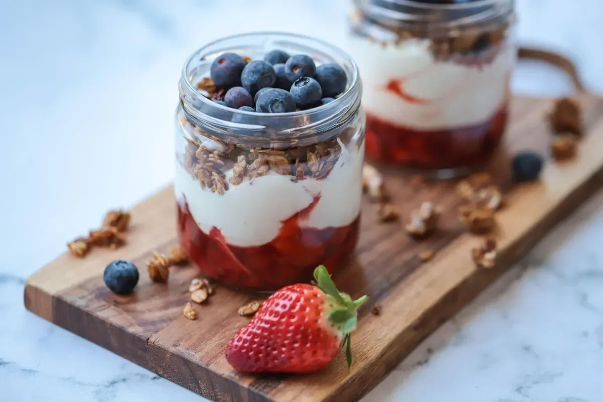 Crafting the perfect Strawberry Sauce Parfait is an artful journey into layers of delight. Begin with a base of freshly mashed strawberries, mixed with a touch of honey and vanilla for a deep, sweet flavour profile. Spoon this vibrant mixture inot elegant glasses or cute jars, creating a colourful foundation. Next, layer on thick creamy Greek yoghurt to add a soothing, rich texture that contrasts beautifully with the zesty strawberry sauce. For a final touch of crunch and additional sweetness, sprinkle a generous helping of honey granola over the yoghurt. Crown each parfait with a handful of fresh blueberries for a burst of tartness and a pop of colour. This delightful combination of textures and flavours makes each spoonful a perfect balance of creamy, crunchy, sweet and tangy-truly a treat for the senses!