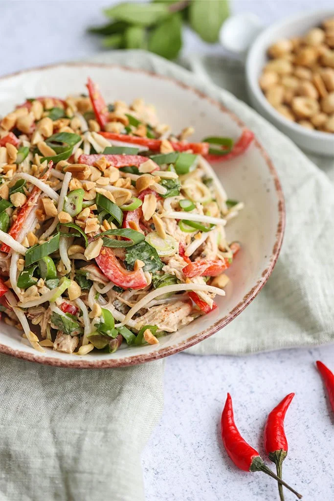 What I love most about this dish is its balance of flavours and textures—crunchy peanuts, crisp veggies, juicy shredded chicken, and a creamy, zesty dressing that adds just the right amount of kick. It’s light, nourishing, and loaded with protein, healthy fats, and fresh ingredients, making it the perfect meal for lunch or dinner.