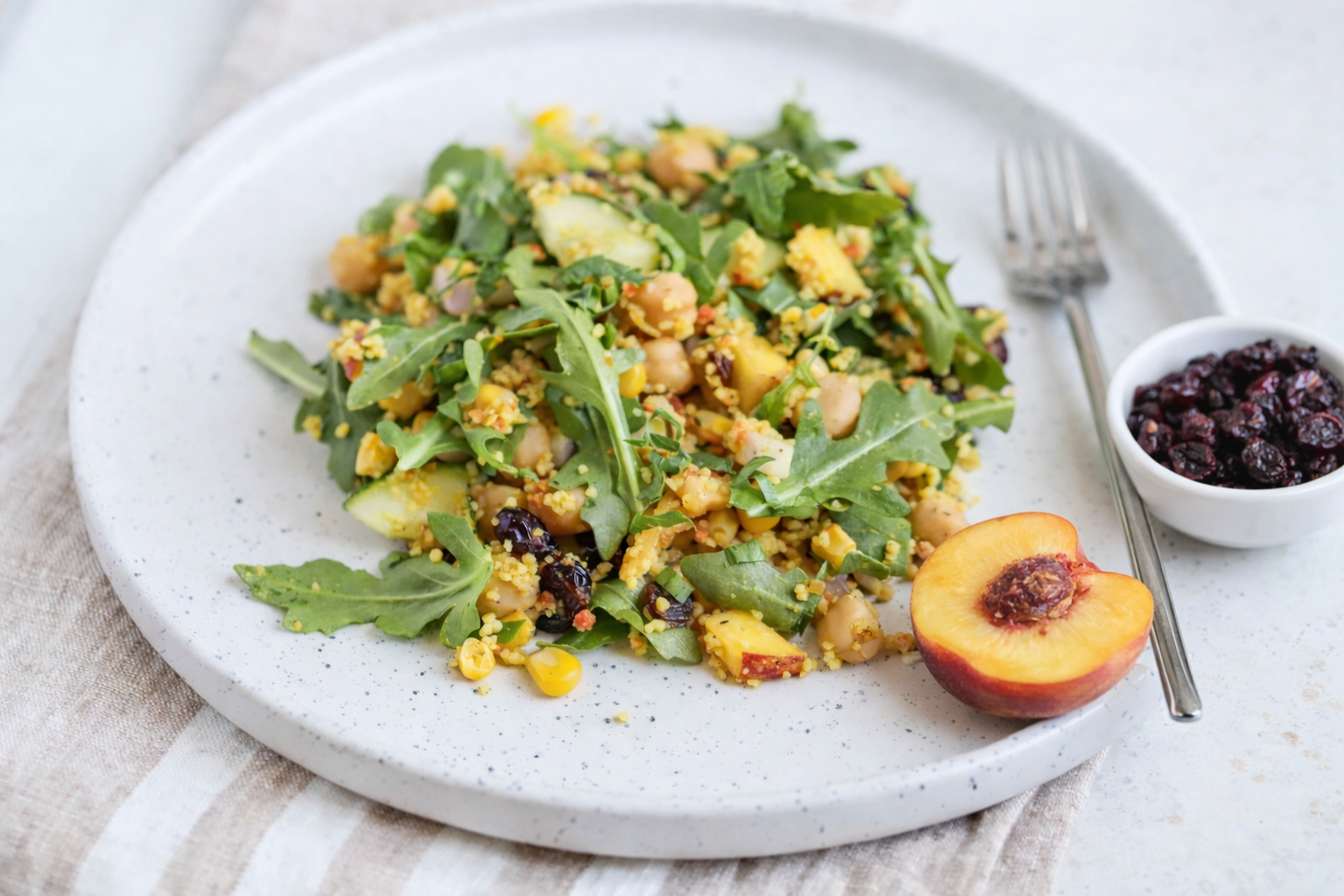 This recipe is flexible by design. You can swap peach for nectarine or mango. Add crumbled feta if you’d like extra richness. Include toasted almonds for crunch. Replace couscous with quinoa for a gluten-free option.