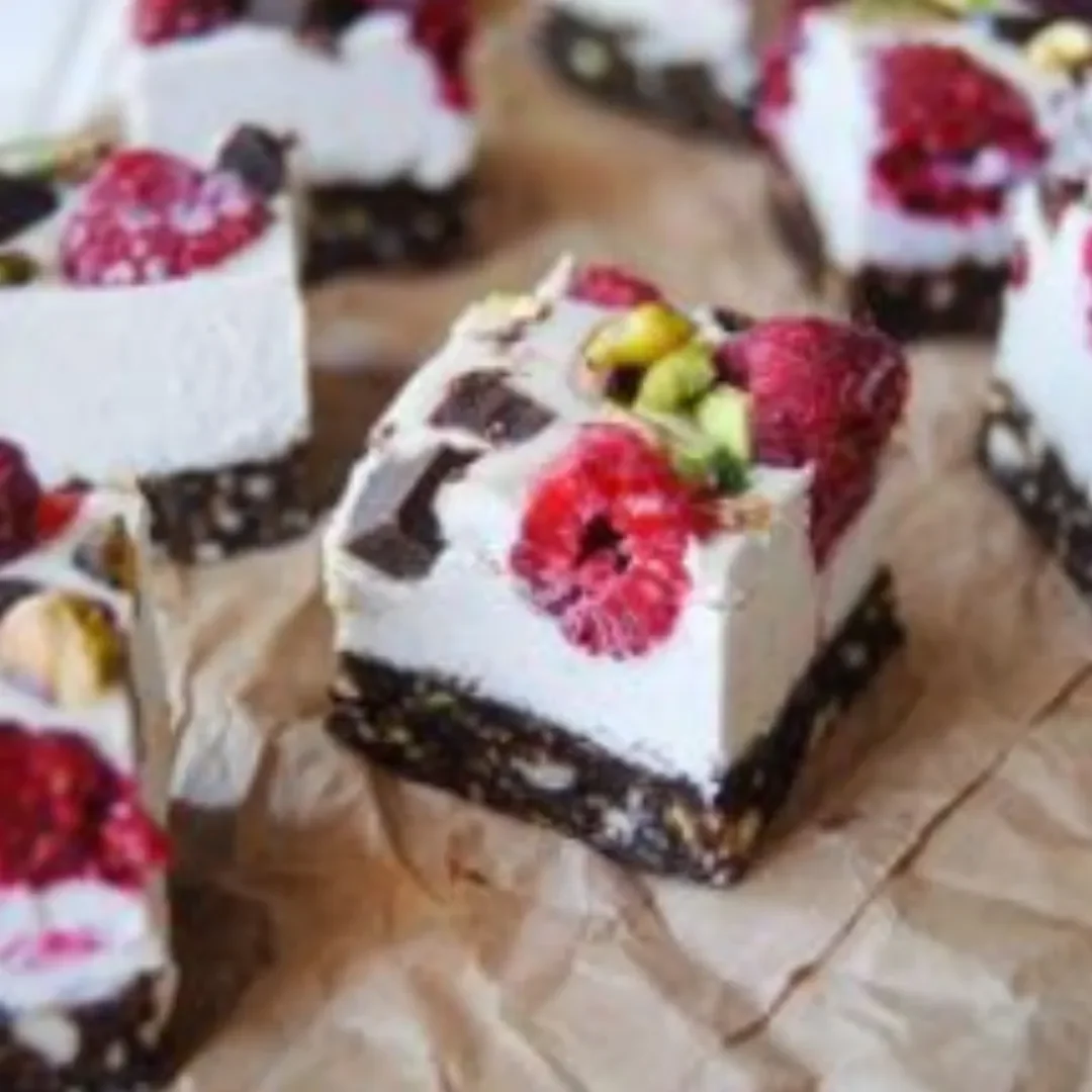 Dessert: No-Bake Raspberry, Pistachio and Chocolate Slice